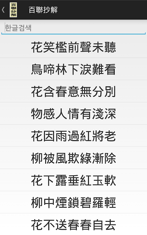 한글 검색기능과 구문별 한자 순서 맞추기 퍼즐도