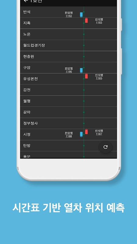 3. 열차 시간표를 활용하여 노선도에 열차 위치를 표시합니다.