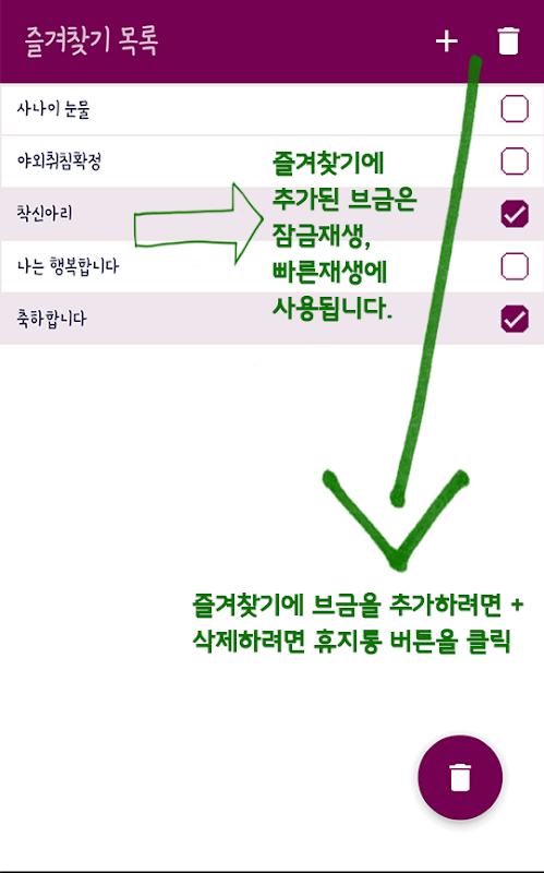 개인적으로 녹음하거나 별도 파일을 기기에 추가하면 재생목록에 등록되어 간편히 재생할 수 있습니다.