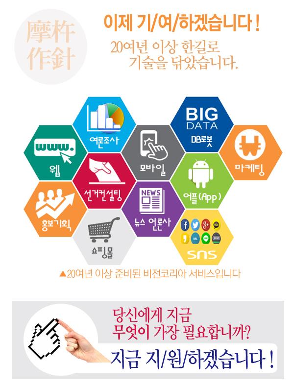 비전코리아는 지난 20여년 이상을 여론조사, 빅데이터, 뉴스, IT, 지역포털, 선거컨설팅 분야에 종사하여 전문기술을 개발, 확보해오고 있습니다.