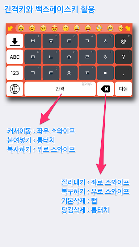Consonant keyboard is an innovative keyboard that only the consonants on the keyboard layout of the keyboard is primarily a way to enter into a non-swipe touch. Even slower because the input was made on the one hand, Hangul input vowels and consonants the way to the bus, subway or transit is convenient to enter at the same time it reduces the number of input characters is an average of 25 percent faster output. For example, if the default keyboard keyboard 400 times consonant with the national anthem 1-4 inputs can be entered in this section if you can get the same results with only input of less than 300 times.