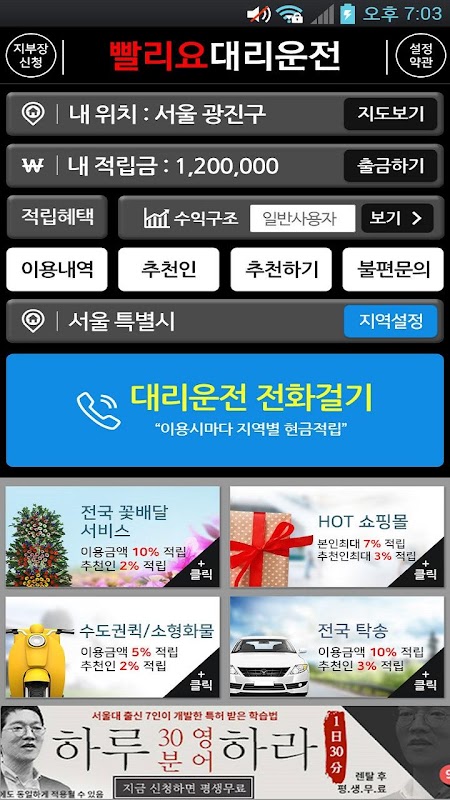 * 대리운전, 퀵서비스, 꽃배달등 생활에서 자주 이용하시는 서비스를 적립금 받으시면서 이용하세요^^