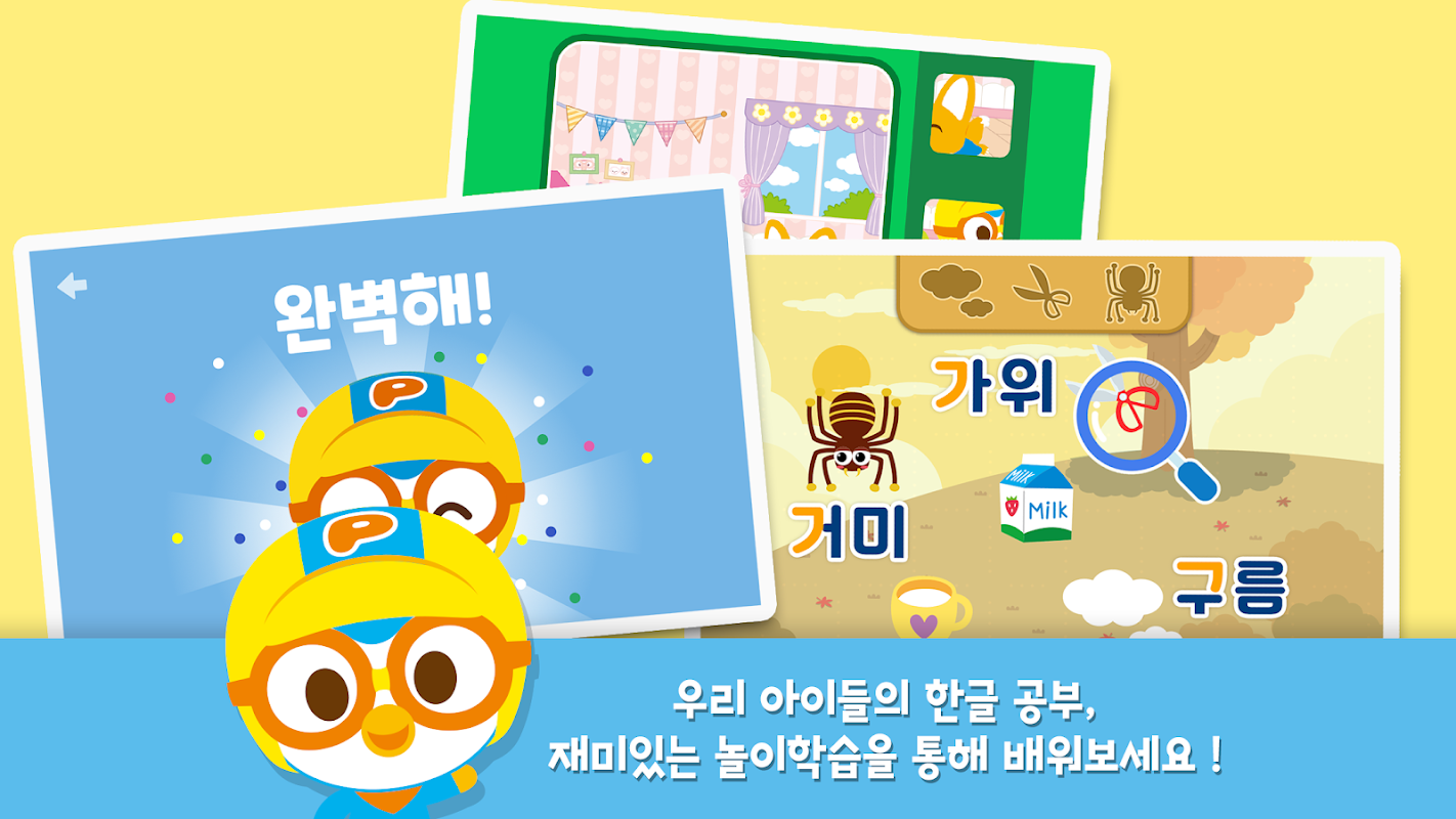 • When you play with Pororo, you will automatically master the Korean words ㄱ~ㅎ at once!!