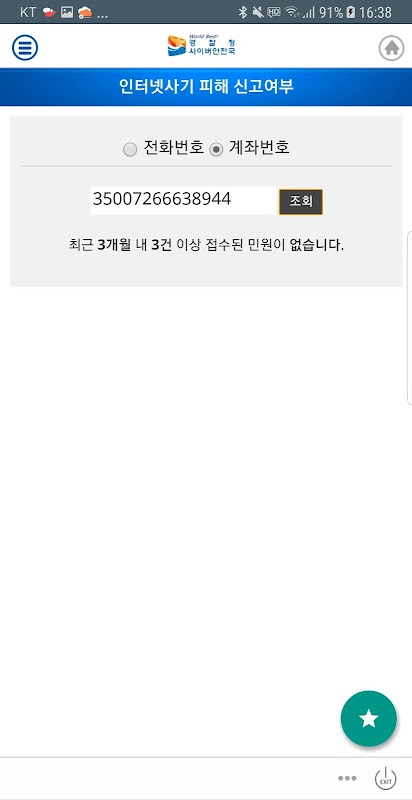 - 이 앱은 경찰청 사이버안전국에서 제공하는 조회 화면과 네이버의 사기피해조회 화면을 그대로 연결할 뿐이며 조회와 관련하여 아무런 관여가 없음을 공지합니다.