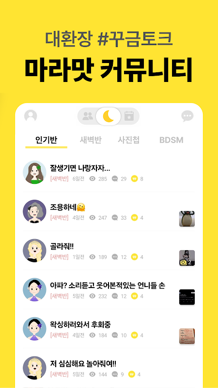 'Dawn Friends' is a mobile community where friends who are usually awake during the early morning hours of the night can anonymously share everything from light daily life to serious concerns. Anyone can freely open up about their feelings and have genuine conversations with new people.