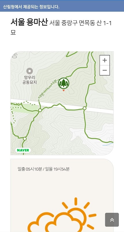 산림청에서 제공하는 산악 기상 정보를 나타냅니다.