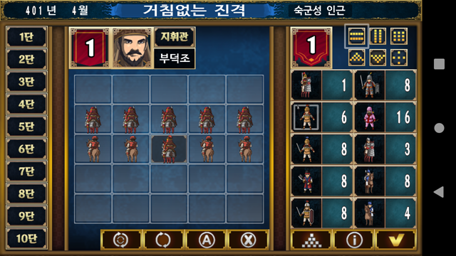 ㅇ 전투 화면 : 병력을 배치하고 목적에 따라 전투를 진행한다.