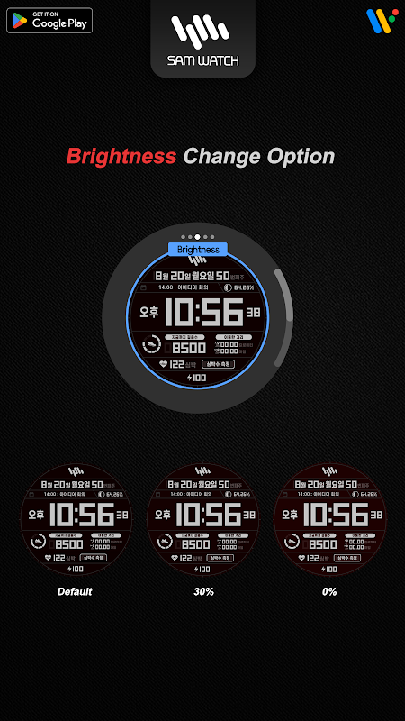 *The smartphone app is an additional app in the Watchface app that explains the download guide. It may be different from the watchface screenshot of the smartphone app and the watchface screenshot that actually downloaded. Most of SamWatch's Watchface app products include apps for smartphones.