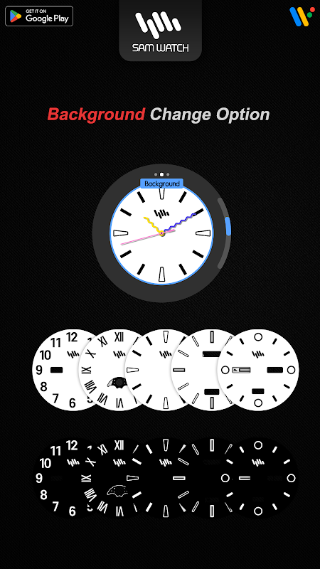*The smartphone app is an additional app in the Watchface app that explains the download guide. It may be different from the watchface screenshot of the smartphone app and the watchface screenshot that actually downloaded. Most of SamWatch's Watchface app products include apps for smartphones.