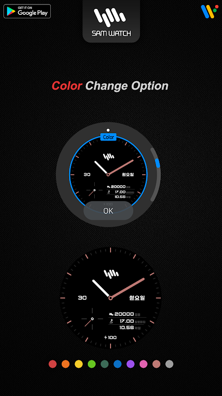 *The smartphone app is an additional app in the Watchface app that explains the download guide. It may be different from the watchface screenshot of the smartphone app and the watchface screenshot that actually downloaded. Most of SamWatch's Watchface app products include apps for smartphones.