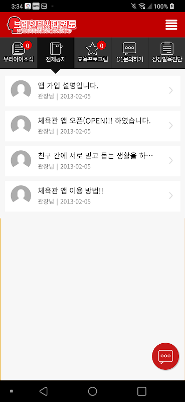 지금은 학부모님과 체육관간 소통의 시대입니다.