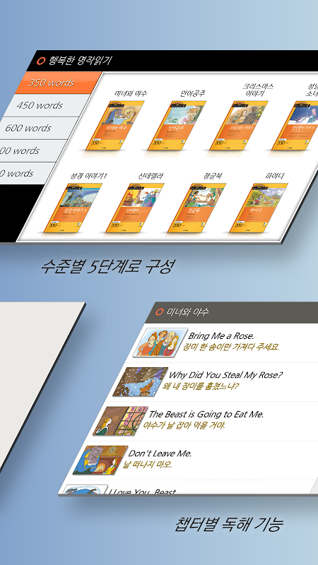 • Grade1 : 350 단어 수준 <미녀와 야수>, <성경이야기1> 등 수록