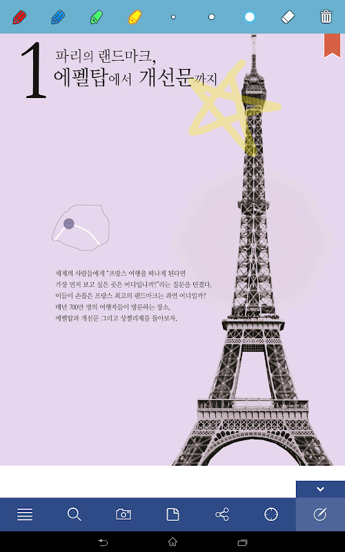 >> 펜 툴 : 당장 받아 적어야 할 때, 지도에 표시해야 할 때 우왕좌왕은 금물! 앱북에 바로 쓰고, 표시하고, 그리세요.