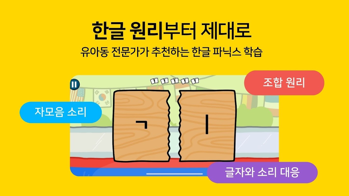 통글자 학습법보다 3배 더 효과적인 한글 파닉스 학습! 글자의 소리를 익히며 한글의 원리를 깨우치고 정확한 발음을 습득할 수 있습니다.