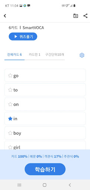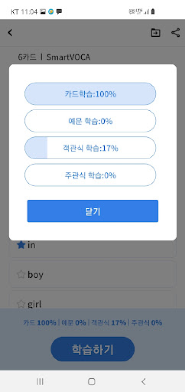 Divided into card learning, example sentence learning, and matching learning, you can quickly and accurately understand key English words through systematically organized functions.
