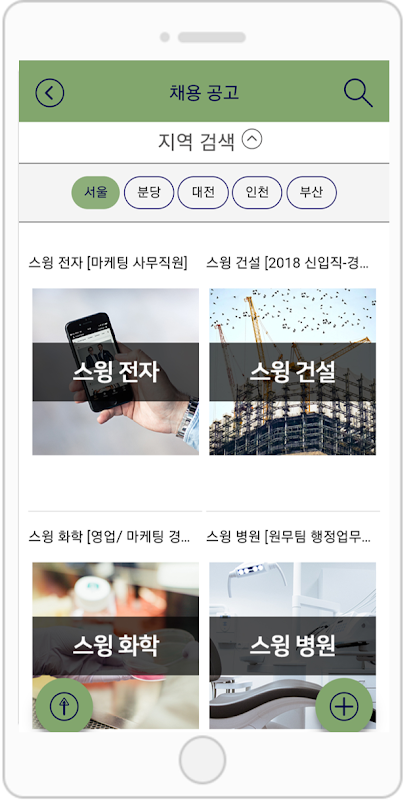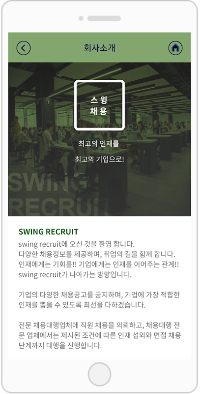 앱제작 서비스 '스윙'으로 제작한 스윙 채용 샘플앱