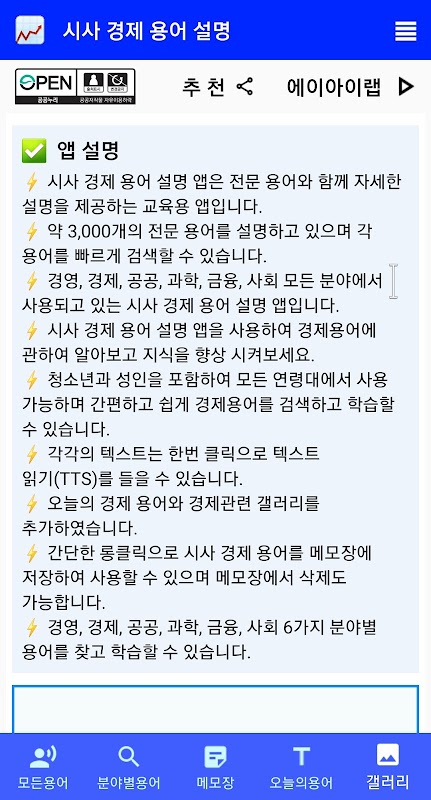 ■ 시사 경제 용어 설명 앱을 사용하여 경제용어에 관하여 알아보고 지식을 향상 시켜보세요.