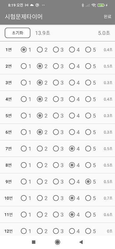 시험 문제 타이머 - 문제풀이 시간 측정, 채점 기능 1.0