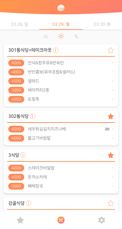 -You can register as your favorite restaurant by tapping the star on the restaurant you want in the menu tab. It would be nicer to see the menus of the restaurants you go to all in one, right?