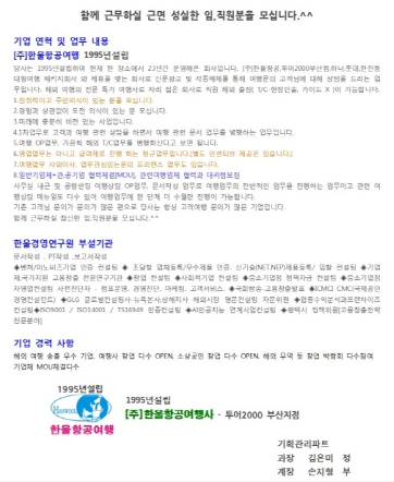 ▣회사명 : (주)한울항공, 투어이천여행 부산점