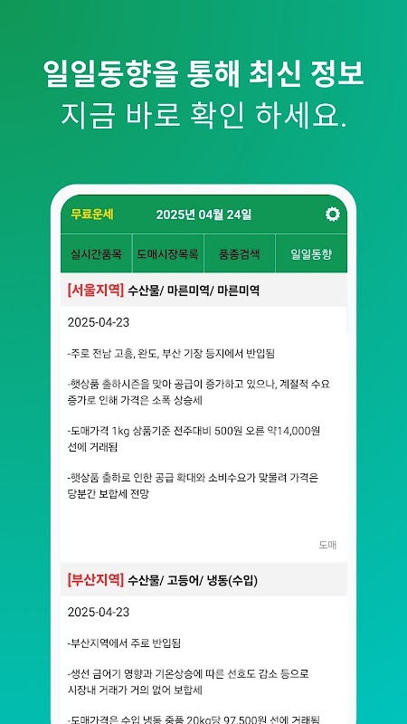 실시간 농산물 가격 - 경매시세 조회 1.6