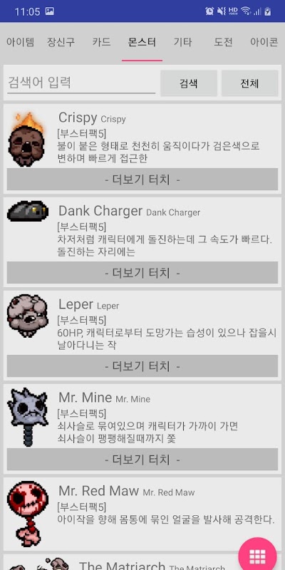 아이작 리버스,애프터버스,애프터버스+ 아이템, 몬스터, 기타정보를 검색할 수 있습니다.