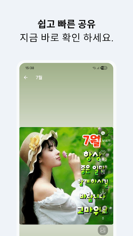 Monthly greetings 🗓️✨: Meet special monthly greetings and postcards related to seasons such as New Year, Lunar New Year, Chuseok, and Christmas. You can convey love and congratulations with heartfelt messages for each month.