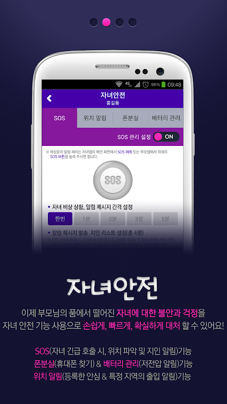 - In the event of an emergency, the child can send the current location to the parents via SMS and receive an emergency call.