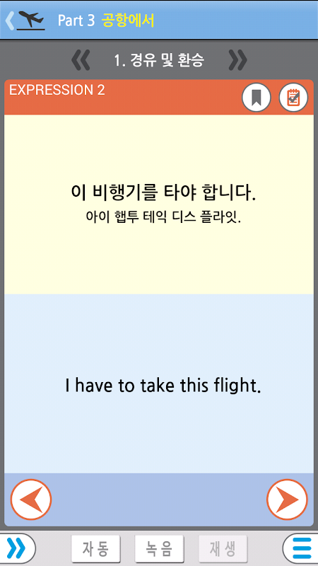 학습자가 원하는 상황회화를 선택해 반복적으로 청취하며 학습하는 테마