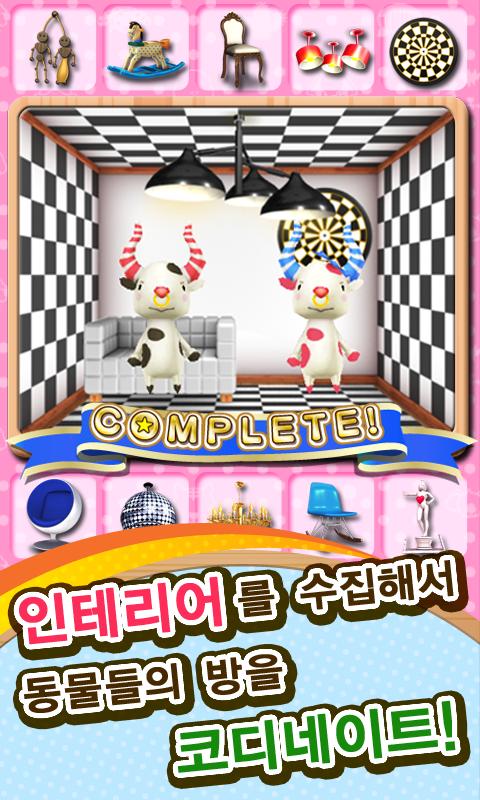 지도에 있는 보물 상자에는 땅벌레들이 뺏어간 동물들의 인테리어가 담겨있으니, 이 인테리어들을 수집해서 동물들의 방을 조금씩 꾸며주세요!