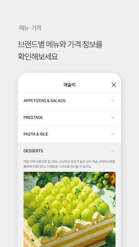 Accumulate rewards based on Ashley Cash recharge/use, and even detailed menu and price information for each brand!