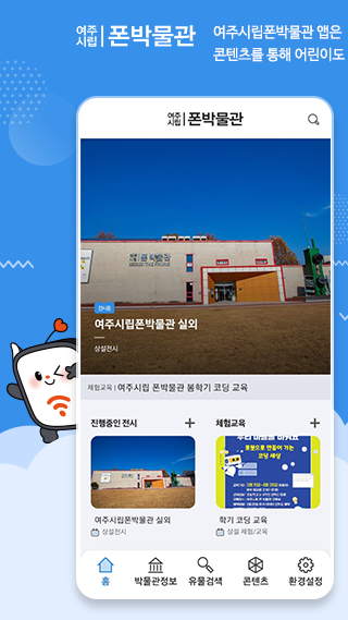 The Yeoju City Phone Museum app uses indoor positioning technology to automatically use the exhibition voice guidance service, and you can easily search for artifacts simply by shooting with a smartphone camera. In addition, new exhibition contents using augmented reality (AR) and virtual reality (VR) are prepared. In the children's mode, you can easily and happily visit the museum through experiential services such as the collection of relics and the phone OX/quadruple quiz.
