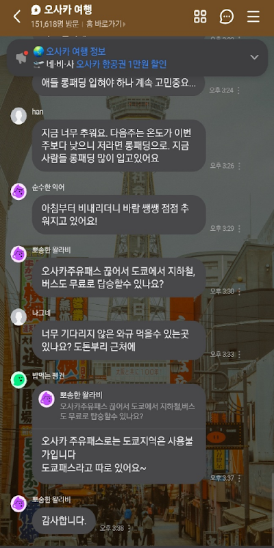 Enjoy open chatting on various topics such as overseas travel, domestic travel, Japan travel, broadcasting, drama, entertainment, and sports.