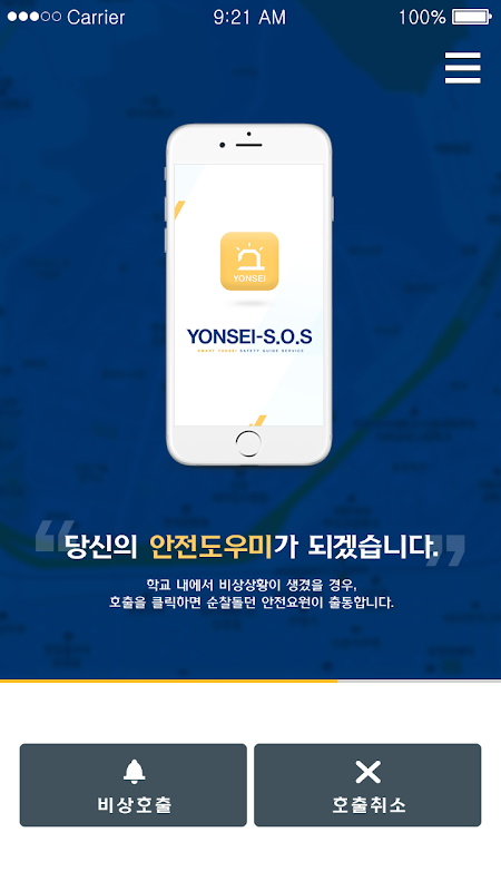 - 야긴 또는 도움이 필요할 상황에서 미리 APP를 실행한 후, 긴급 상황에서 스마트폰을 흔들거나 긴급버튼을 누르시면 됩니다.