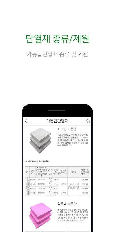 : 가등급단열재, 준불연/불연 단열재 특성 및 제원 설명