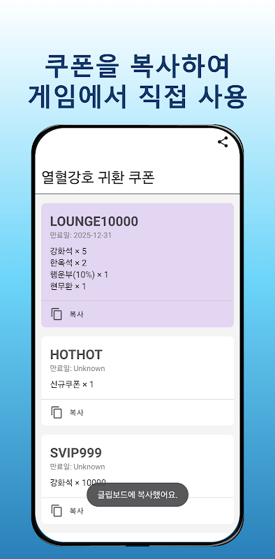 복사 버튼으로 쿠폰 코드 복사도 쉽게!📋✔️