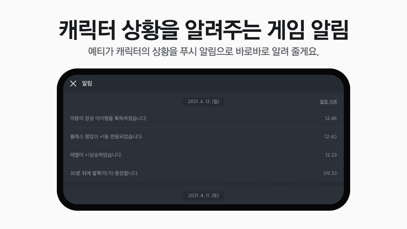 We will notify you immediately of the character's status via Push.