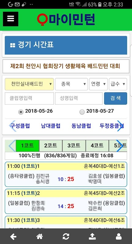 배드민턴 협회(단체) 회원,대진표자동작성 및 온라인 경기진행 프로그램의 최강자