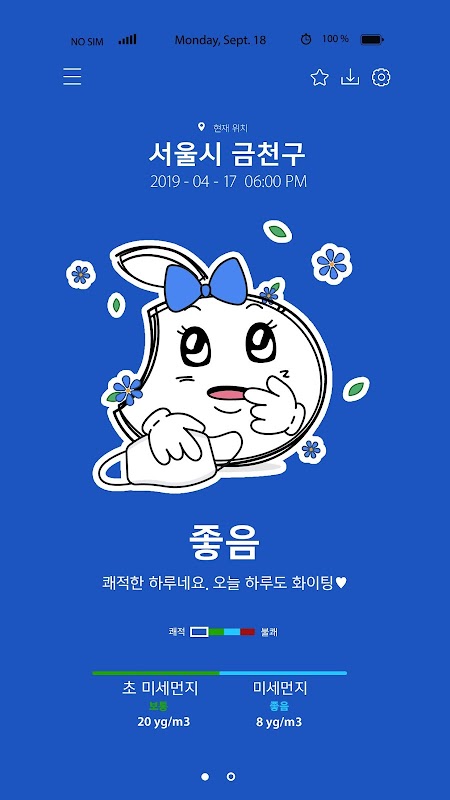 오지다씨 외에도 다양한 캐릭터로 정확한 미세먼지정보를 확인하고 지인과 공유해보세요~!