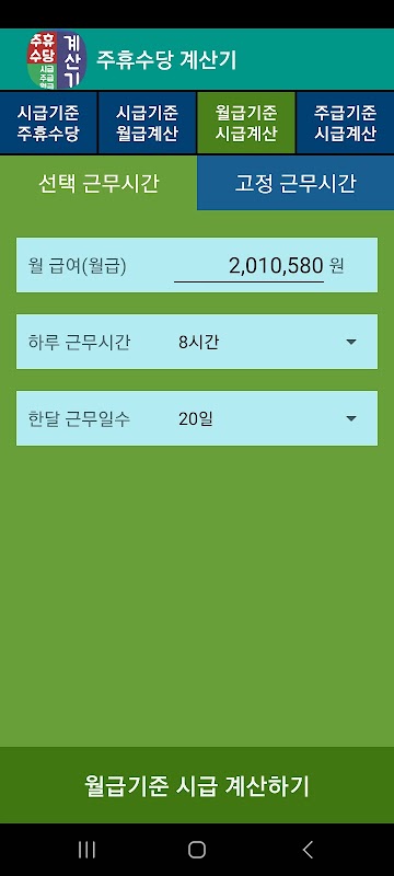 주휴수당계산기 주급계산기 월급계산기 시급 근무시간계산기 2.15