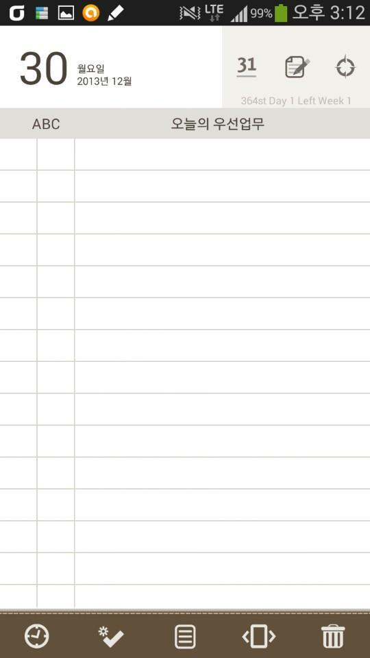 - 좌우 플리킹으로 업무-일정-기록사항으로 화면 이동.