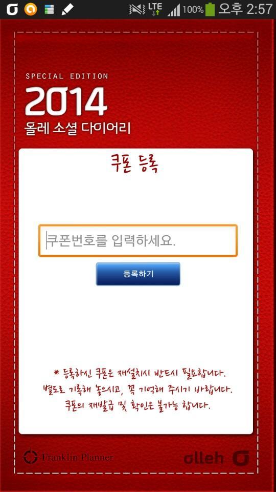 올레 소셜미디어 팬들을 위한 '특별 한정판' 프랭클랜 플래너 입니다.