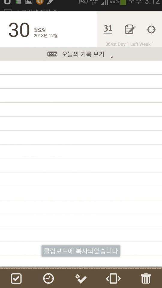 - 해당하는 업무(일정,기록사항)을 길게 누르면 보내기(복사) 가능.