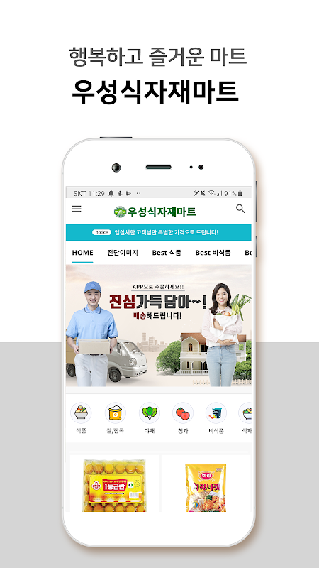 Woosung Food Materials Mart is an application for customers using the app. You can use various services such as mobile shopping, discount coupons, receipts, and sales information confirmation.
