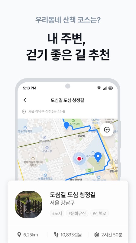 • The place screen introduces good walking paths nearby. From beautiful landmarks to hidden paths in the city, the location and information of walking courses are provided along with maps.