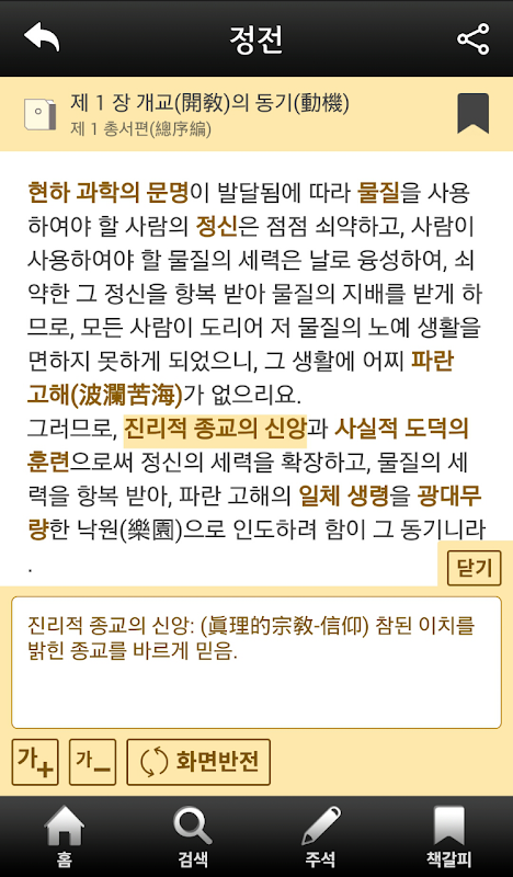 SNS sharing function of the scripture text (Kakao Talk, Kakao Story, Naver Band, text message, email)