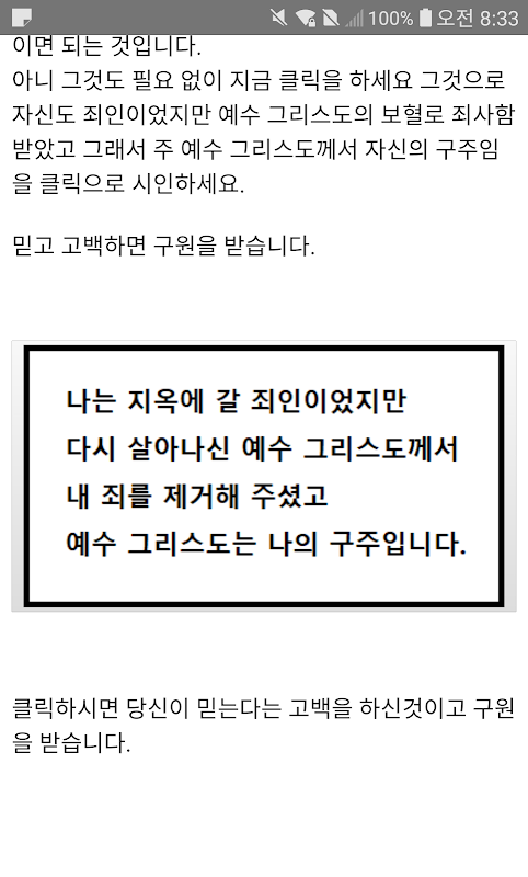 그것으로 나는 죄인이었지만 예수 그리스도의 보혈로 죄사함받았고 그래서 주 예수 그리스도께서 자신의 구주임을 클릭으로 시인하세요.