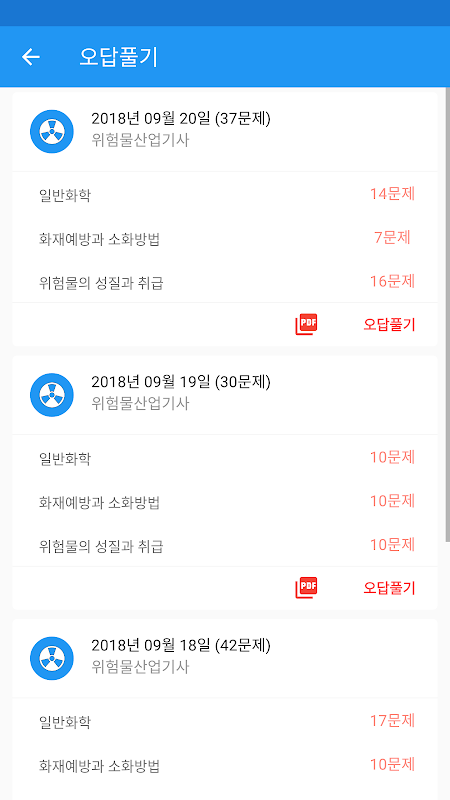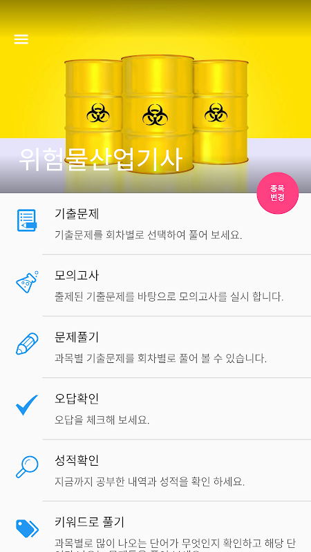 기출문제 - 각 시험별 기출문제를 풀어보는 메뉴입니다.