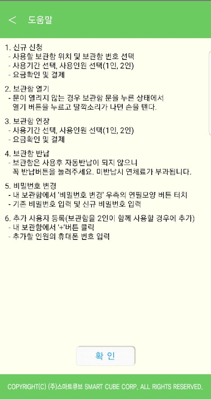(주)스마트큐브의 의류/물품 보관함을 제어할 수 있는 애플리케이션입니다.