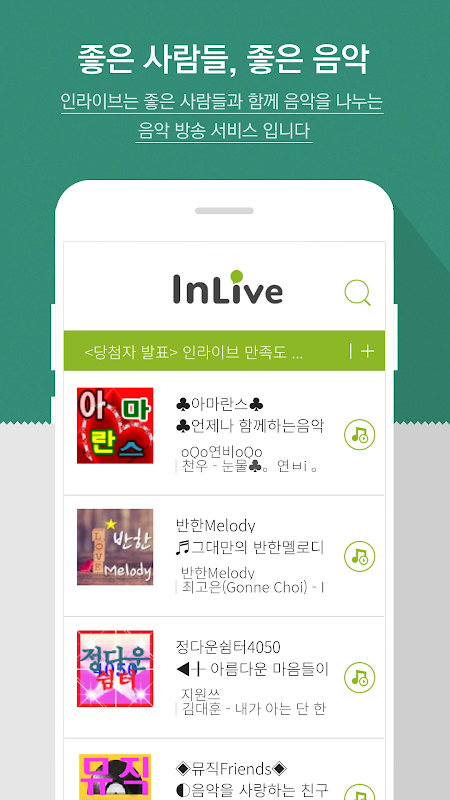 좋은 사람들과 함께 음악을 나누는 무료 음악방송 청취 앱 인라이브(INLIVE) 라디오.